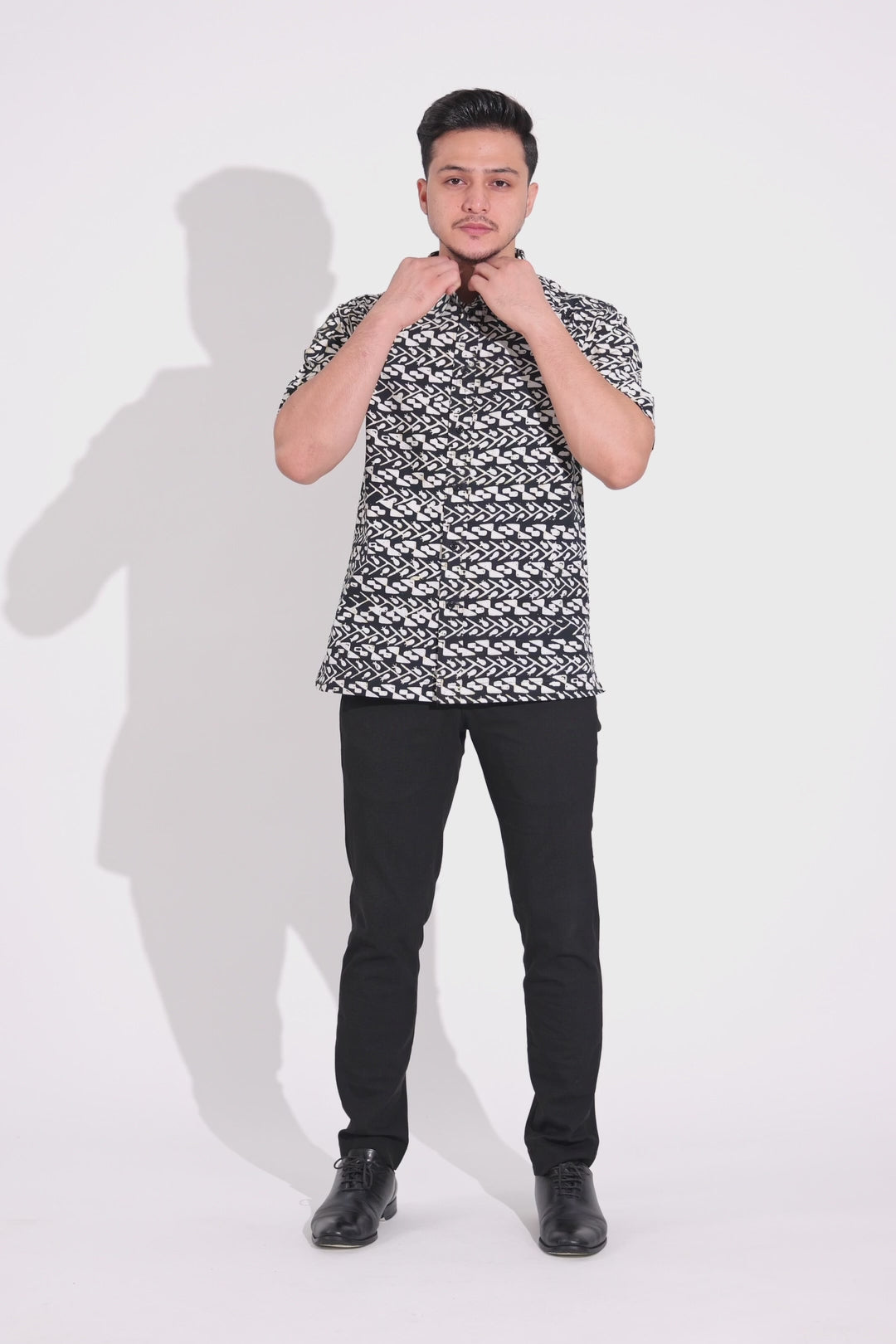 Darjat embodies sincerity through simple yet confident design. Each batik is crafted using a traditional single-layer block printing technique, presenting timeless motifs reimagined in a bold black and white palette.