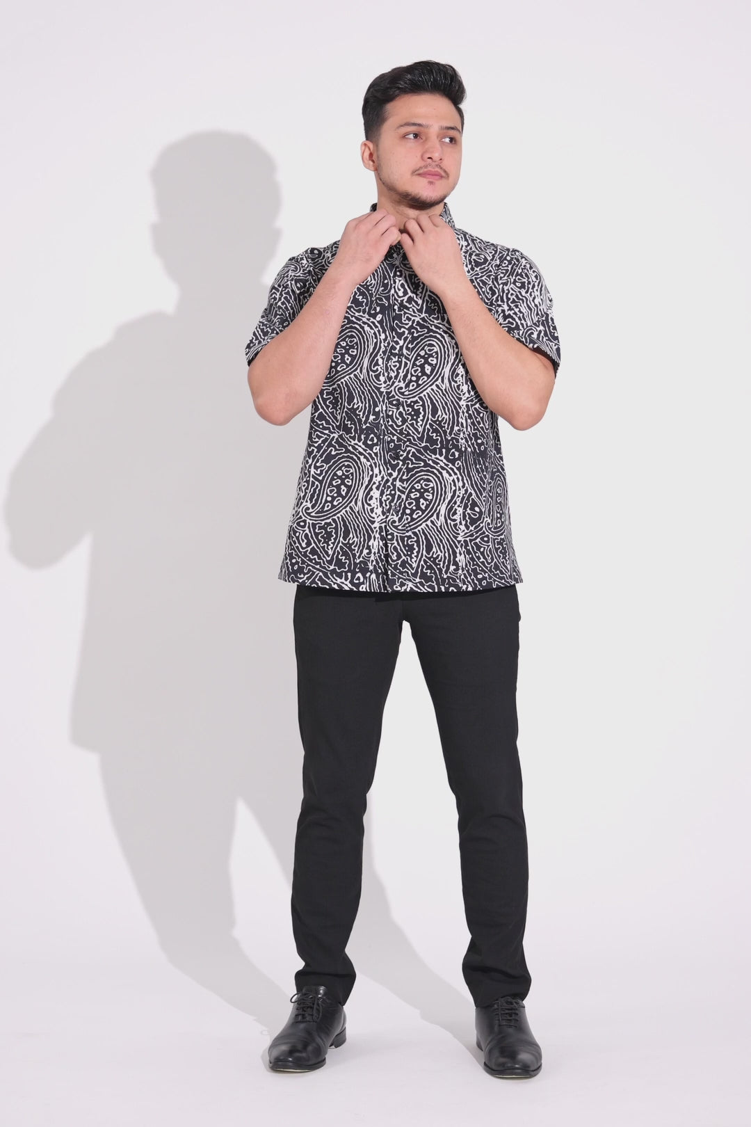 Darjat embodies sincerity through simple yet confident design. Each batik is crafted using a traditional single-layer block printing technique, presenting timeless motifs reimagined in a bold black and white palette.