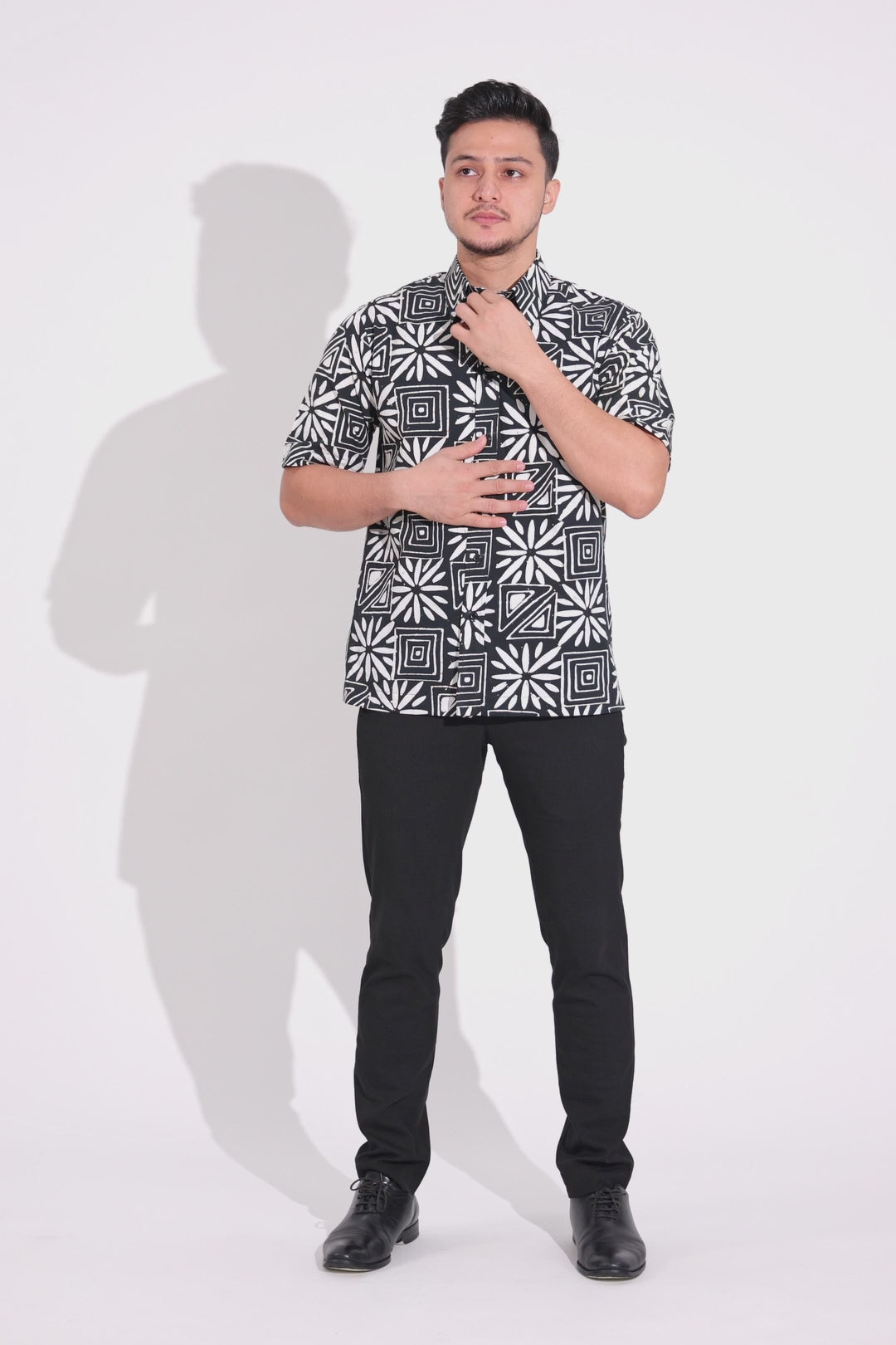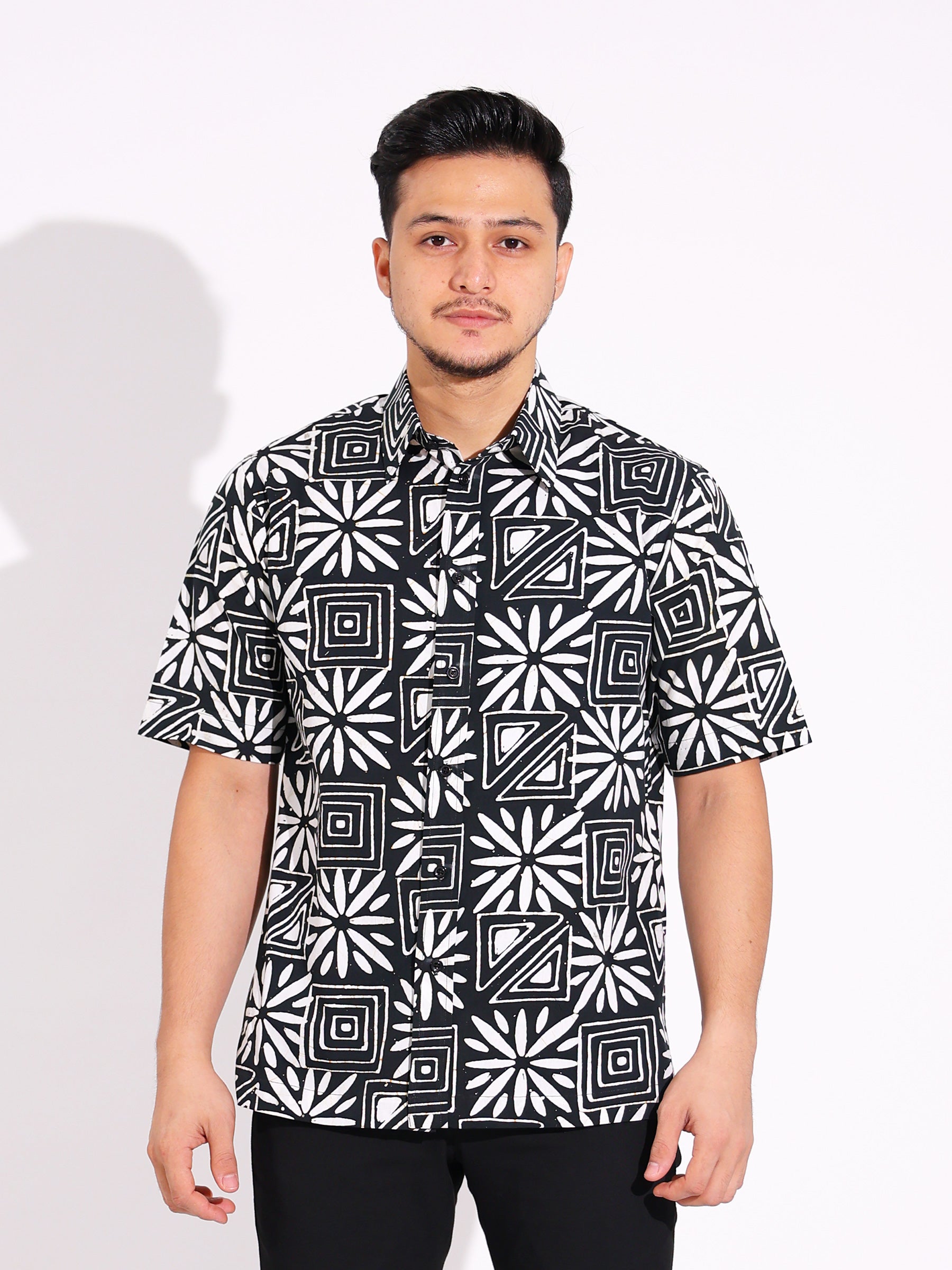 Darjat embodies sincerity through simple yet confident design. Each batik is crafted using a traditional single-layer block printing technique, presenting timeless motifs reimagined in a bold black and white palette.